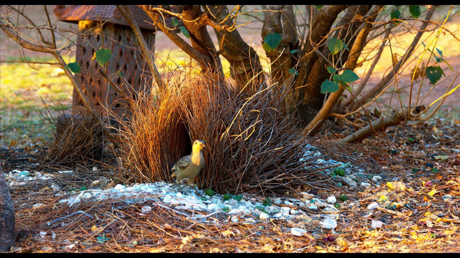 Đỏm dáng không thôi chưa đủ, sự quyến rũ của chim Bowerbird còn tới từ đức tính kiên nhẫn, tài năng nghệ thuật, tính cách tinh tế, và sự chu đáo tỉ mỉ. Trong thực tế, loài chim này thường dày công thiết kế và tạo ra một viễn cảnh thơ mộng để thu hút con cái tới giao phối. Thời gian dành cho công việc này thường kéo dài trong hẳn từ 9 cho tới 11 tháng.