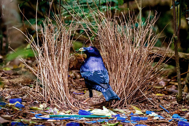 Mặt khác, Bowerbird cũng rất tinh tế trong việc chọn lựa các vật thể dùng để trang trí lên chiếc tổ của chúng. Bowerbird có màu sắc ưa thích là màu xanh lam (blue) nhưng chúng không ngại dùng những vật mang màu sắc khác vào công việc trang trí. Những đám lông màu sắc, quả mọng, vỏ cây hoặc hoa lá, dù trang trí bằng loại vật liệu nào, chim Bowerbird vẫn luôn cho thấy chúng xứng đáng là bậc thầy phối màu trong giới động vật.